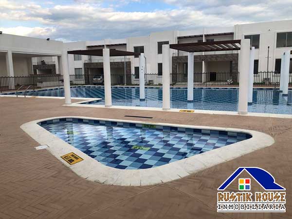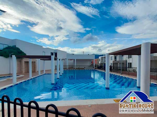 Área 100 M2, El conjunto cuenta con portería 24 horas, piscina para niños y adultos, parque infantil, salón social, capilla, zona Bbq, parque para mascotas, cancha de fútbol, cancha múltiple, zonas verdes, Casa de dos pisos, el primer piso consta de garaje para un vehículo, sala, comedor, cocina integral, patio de ropas, zona de lavandería, baño social, el segundo piso consta de tres habitaciones con closet y cortinas, habitación principal con baño privado, balcón y vestier, baño auxiliar, pisos en porcelanato. Estrato 4. Administración $280.000