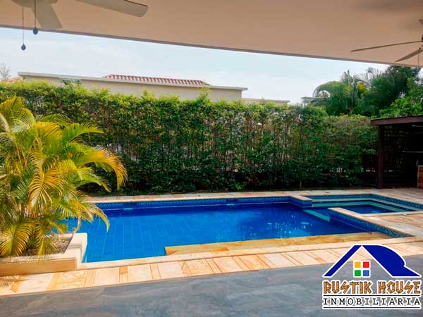 Área de terreno 700 M2, área construida 240 M2, porteria 24 horas, senderos peatonales, salón social, zona de BBQ, piscina, cancha de tennis, cancha múltiple, parque para niños. La casa consta de antejardín amplio, garaje para 4 vehículos, sala comedor con acceso a terraza, zona de lavandería, estudio lineal con mueble y baño, sala de Tv, baño social, cocina integral amlia con lavavajillas, 4 alcobas con closet y baño privado, cortinas en black out, aire acondicionado y ventiladores de techo, piscina, jacuzzi, zona de BBQ. Estrato 6